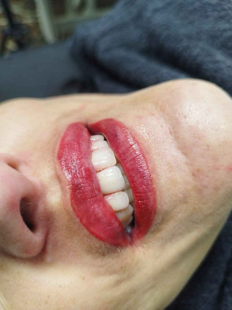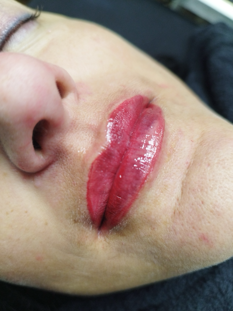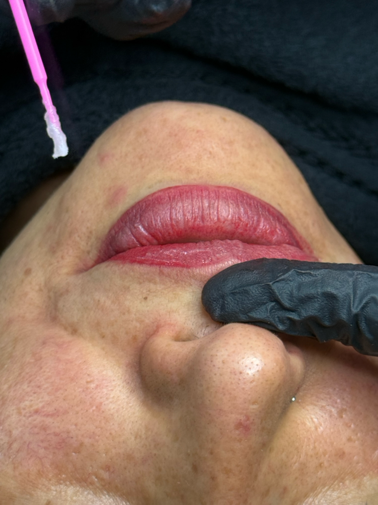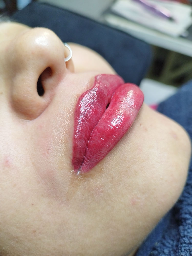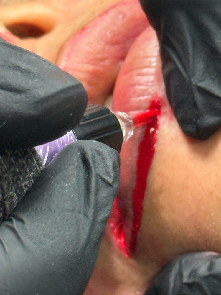 Técnica de maquillaje semipermanente para los labios. La llevamos a cabo con una aguja con la que realizamos pequeñas incisiones, mínimas, en las que vamos depositando el pigmento. Este proceso es indoloro ya que se utiliza anestesia tópica antes y durante el procedimiento.